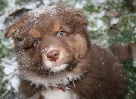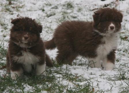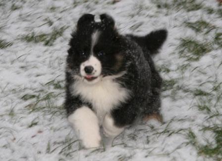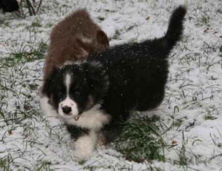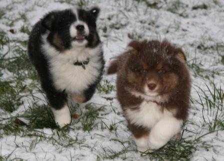 | Die Welpen sind wie die Verrückten über die Wiese gerast und kugelten sich abwechselnd im Schnee. | |