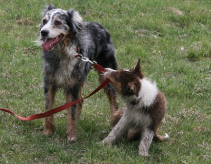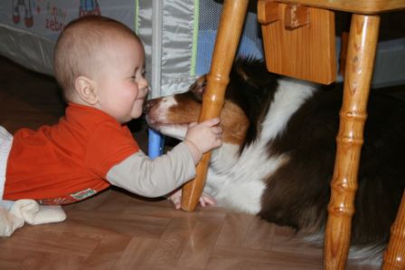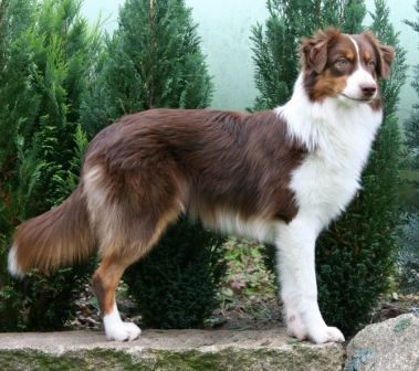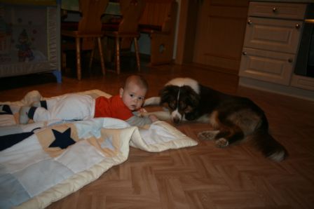 Hier ist sie nun. Ein Sydney-Kind wie aus dem Buche. Jana und David haben 5 lange Jahre auf ihr Jamie-Baby gewartet ;o) Leider war in Jamie's letztem Wurf nur eine Hündin dabei. Dies war unsere Sydney, welche ja bei uns bleiben sollte und in Mutti's Fußstapfen tritt. Irgendwie stand für Jana aber immer fest, dass ihr nächster Hund entweder ein Hund von uns wird, oder gar keiner ;o) Also hieß es warten... Als nun Sydneys erster Wurf geplant war, ging die spannende Zeit los. Sollte in diesem Wurf ein Mädchen dabei sein, welches zu den beiden passt? Und es kam es wie es kommen sollte... Vom ersten Augenblick an wusste Jana, welche es sein wird. Optisch und charakterlich passte alles zusammen: CASSIE kam, sah und siegte! Wir danken Euch zweien für Euer Vertrauen in uns und eure lange Geduld und Warterei. Wie ihr seht, es hat sich gelohnt! Cassie ist eine kleine, zarte Hündin, die im Wesen -genau richtig- nach Mama Sydney & Papa Rascal kommt und im Exterieur voll und ganz unserem Zuchtziel entspricht ;o) Cassie hat oft ein schelmisches Grinsen im Blick, zeigt viel "Bein- und Tatzenarbeit" und hat eine Art die schlichtweg verzaubert. Durch ihren einzigartigen Gesichtsausdruck hat sie sich hier den Spitznamen "Clownfisch" ergattert ;o) Wir sind gespannt wie sich der kleine "Clownfisch" noch weiterentwickeln wird und halten Euch hier auf dem laufenden. Update 2013: Cassie hat sich wirklich toll gemacht und Familie Schwibs ist mit diesem Hund der 100%igen Zufriedenheit nahe ;o) Cassie ist so ein freundlicher, zarter und aufgeschlossener Hund geworden, das es manchmal schon unheimlich ist. Mit Söhnchen Noah (Zweibeiner), der im Mai 2012 geboren ist, verträgt sie sich mehr als gut. Noah entwickelte sich innerhalb kürzester Zeit zu Ihrem Zieh-Kind und auch wenn alles unter großer Aufsicht geschieht, er kann sich bei ihr scheinbar alles erlauben bzw. wird ihm alles verziehen. Ganz unten in der Galerie zwei Bilder ;o) Cassie macht mich wahnsinnig stolz auf unsere Nachzucht. Hier findet ihr einen Familienbericht über Cassie's Einzug und Leben im Hause der Familie Schwibs. |