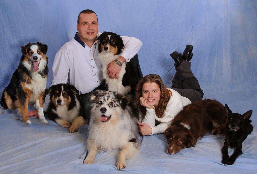 WHY AUSTRALIAN SHEPHERDs? For us, it is the greatest happiness, to live with them. We live in a little farmyard in our pretty Lausnitzer Heide, near Dresden. It is countrified and we're surrounded by fields and meadows. Our dogs occupy an important place in our family life. The dog pack of my husband and me is composed of 7 dogs at different ages. We have 6 Australian Shepherds and 1 Miniature Schnauzer. |